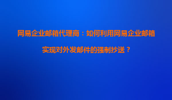 2025-11-04网易企业邮箱代理商:如何利用网易企业邮箱实现对外发邮件的强制抄送? 引言 在现代企业管理中,邮件沟通是不可或缺的一部分。许多企业希望对其员工的对外邮件进行监管,以确保信息的安全性、合规性和透明度。网易...