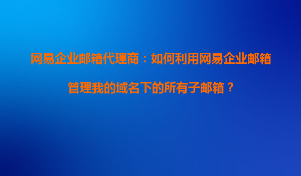 2025-11-04网易企业邮箱代理商:如何高效管理域名下的子邮箱 作为网易企业邮箱的代理商,您不仅能为客户提供稳定可靠的邮箱服务,还能通过强大的管理功能轻松管理域名下的所有子邮箱。网易企业邮箱以其丰富的功能和简洁的...