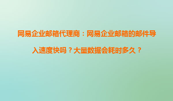 2025-11-04网易企业邮箱代理商:网易企业邮箱的邮件导入速度快吗?大量数据会耗时多久? 作为国内领先的企业邮箱服务提供商之一,网易企业邮箱凭借其稳定性和安全性赢得了众多企业的青睐。许多企业在迁移至网易企业邮...