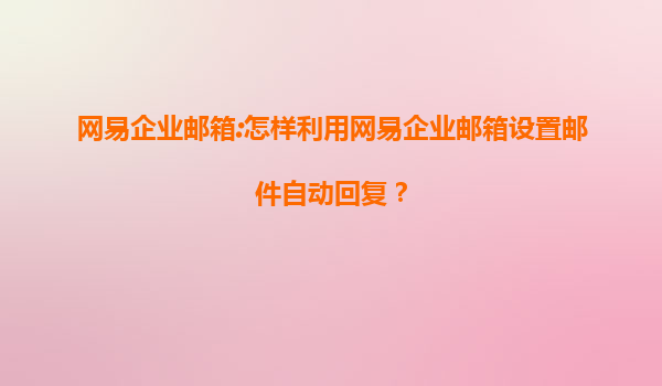 网易企业邮箱:如何高效设置邮件自动回复? 为什么自动回复功能对企业至关重要? 在快节奏的商业环境中,及时响应客户咨询是企业专业度的体现。网易企业邮箱的自动回复功能,让您的客户在节假日、非工...