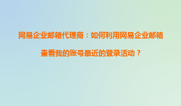 2025-11-03网易企业邮箱代理商:如何利用网易企业邮箱查看账号最近的登录活动? 引言 在当今数字化时代,企业邮箱不仅是内部沟通的重要工具,也是企业数据安全的关键环节。网易企业邮箱作为国内领先的企业邮箱服务提供商,以...