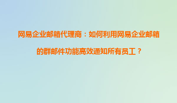 2025-11-03网易企业邮箱代理商:如何利用网易企业邮箱的群邮件功能高效通知所有员工? 一、网易企业邮箱群邮件功能的优势 网易企业邮箱作为国内领先的企业通信工具,其群邮件功能在高效通知员工方面具有显著...