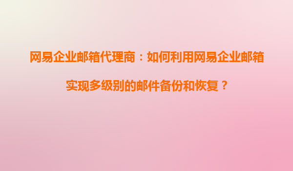 2025-11-03网易企业邮箱代理商:如何利用网易企业邮箱实现多级别的邮件备份和恢复? 一、网易企业邮箱的核心优势与邮件备份恢复需求 作为国内领先的企业级邮箱服务提供商,网易企业邮箱凭借高可靠性架构和数据安全...