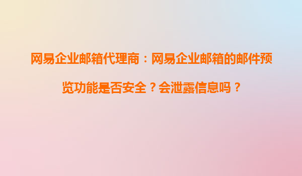 2025-11-03网易企业邮箱代理商:网易企业邮箱的邮件预览功能是否安全?会泄露信息吗? 引言 在当今数字化时代,企业邮箱的安全性成为企业信息化管理的重中之重。网易企业邮箱作为国内领先的企业邮箱服务提供商,以其稳定性、...