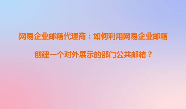 网易企业邮箱代理商:如何利用网易企业邮箱创建一个对外展示的部门公共邮箱? 引言 在当今企业运营中,一个功能完善、便于管理的公共邮箱是企业与外部客户或合作伙伴高效沟通的重要工具。网易...