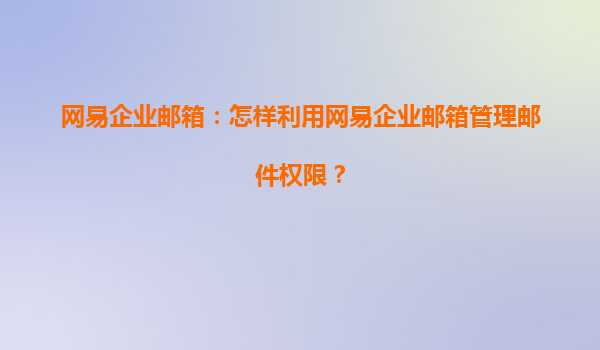 2025-06-19网易企业邮箱:怎样利用网易企业邮箱管理邮件权限? 在数字化办公的时代,电子邮件成为了企业沟通的重要工具。网易企业邮箱作为一种专业的商务通讯解决方案,为企业提供了高效、安全的电子邮件服务。通过优异的...