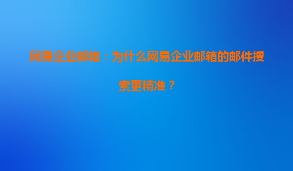 2025-06-19网易企业邮箱:为什么网易企业邮箱的邮件搜索更精准? 在当今这个信息化快速发展的时代,电子邮件已经成为企业沟通不可或缺的工具之一。高效、精准的邮件搜索功能,能够极大提升企业的工作效率。网易企业邮箱就是市...
