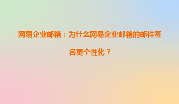 2025-06-19网易企业邮箱:为什么网易企业邮箱的邮件签名更个性化? 企业邮箱作为专门为企业用户设计的电子邮箱服务,其在功能和安全性上相比普通邮箱有着显著提升。作为中国最早提供企业级邮件服务的互联网公司之一,网易企...