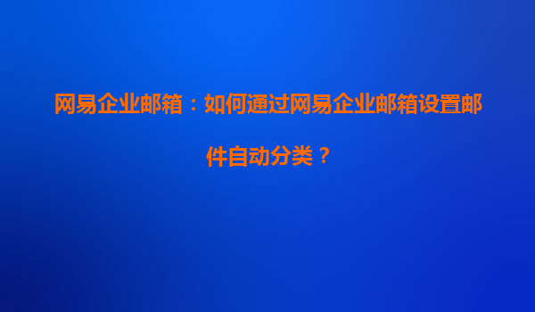 2025-06-19网易企业邮箱:如何通过网易企业邮箱设置邮件自动分类? 随着企业运作日益复杂化,电子邮件作为沟通的主要方式之一,其管理与效率直接影响到工作流程和业务发展。网易企业邮箱作为专业的商务邮箱解决方案,不仅...