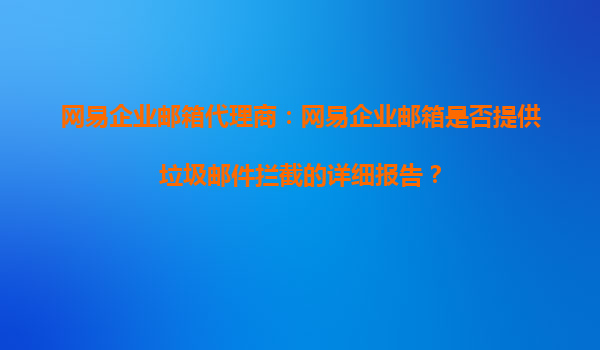 2025-11-03网易企业邮箱代理商解析:网易企业邮箱的垃圾邮件拦截与详细报告功能 作为国内领先的企业邮箱服务提供商,网易企业邮箱凭借其强大的技术实力和优质的服务,赢得了众多企业用户的青睐。其中,垃圾邮件拦截功能及配套...