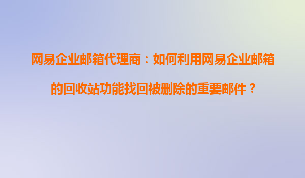 2025-11-03网易企业邮箱代理商指南:如何利用回收站功能找回被删除的重要邮件 一、回收站功能的重要性 在日常工作中,误删邮件的情况时有发生,尤其是重要邮件一旦丢失可能影响业务进程。网易企业邮箱的回收站功...