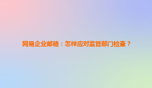 2025-06-15网易企业邮箱:怎样应对监管部门检查? 随着数字化办公的普及,电子邮件已成为企业内部外部沟通不可或缺的重要工具。在政策法规不断完善的当下,企业的信息合规和数据安全也正在接受更为严格的监管检查...