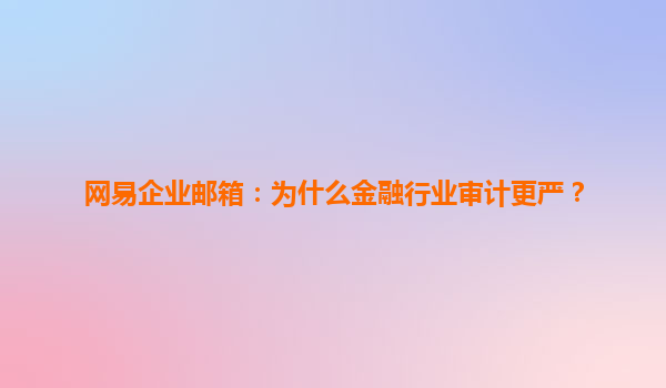 2025-06-15网易企业邮箱:为什么金融行业审计更严? 一、金融行业审计严格的原因 金融行业一直是国家经济的命脉,其涉及到资本流动、风险控制以及个人与企业资产的安全。因此,监管机构对金融行业的审计要求极为严...