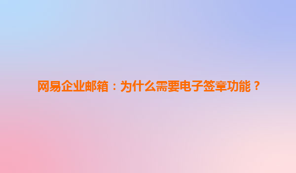 网易企业邮箱:为什么需要电子签章功能? 随着互联网技术的飞速发展,企业办公正逐步迈向数字化、智能化。在众多企业信息化工具中,企业邮箱扮演着沟通内外、传递信息的重要角色。网易企业邮箱以其强大...