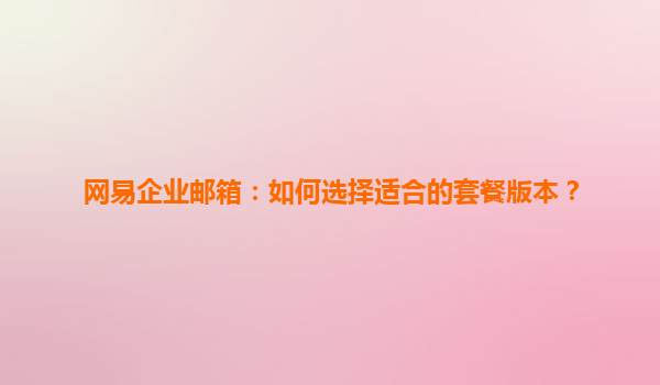 2025-06-15网易企业邮箱:如何选择适合的套餐版本? 随着数字化办公的普及和企业信息安全需求的提高,企业邮箱成为现代企业不可或缺的信息沟通工具。网易企业邮箱作为行业领先的企业邮箱服务商,以其高稳定性、...