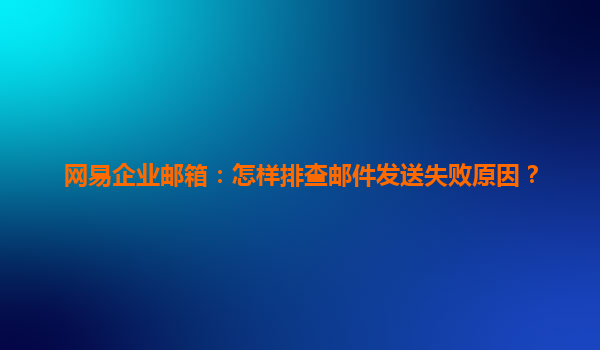 2025-06-15网易企业邮箱:怎样排查邮件发送失败原因? 随着信息化时代的到来,电子邮件已经成为企业日常沟通和协作的重要工具之一。网易企业邮箱凭借其高效、稳定和安全的特性,深受众多企业用户青睐。然而,邮...