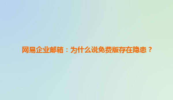 2025-06-15网易企业邮箱:为什么说免费版存在隐患? 随着互联网的飞速发展,电子邮件已经成为企业日常沟通与协作的重要工具。越来越多的企业,尤其是中小企业,选择使用企业邮箱来提升品牌形象、规范管理和保障信...