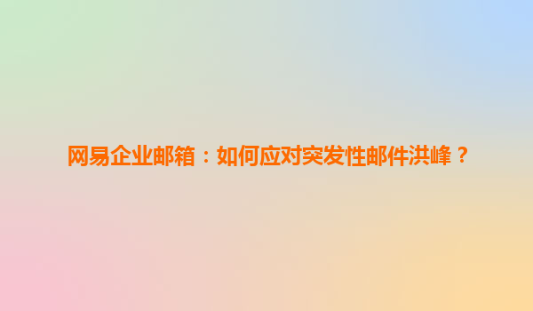 2025-06-15网易企业邮箱:如何应对突发性邮件洪峰? 一、突发性邮件洪峰的背景与挑战 在信息化飞速发展的时代,企业的日常运营愈发依赖电子邮件。无论是内部协作、客户沟通还是市场营销,邮件都扮演着举足轻重的角...