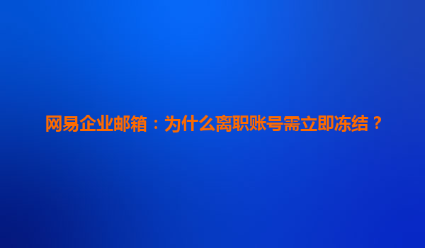 2025-06-14网易企业邮箱:为什么离职账号需立即冻结? 在现代企业管理中,信息安全和数据保护已经成为企业运营的重中之重。邮件作为企业沟通和信息流转的重要工具,其安全性直接关系到企业的核心利益。网易企业邮箱,作...