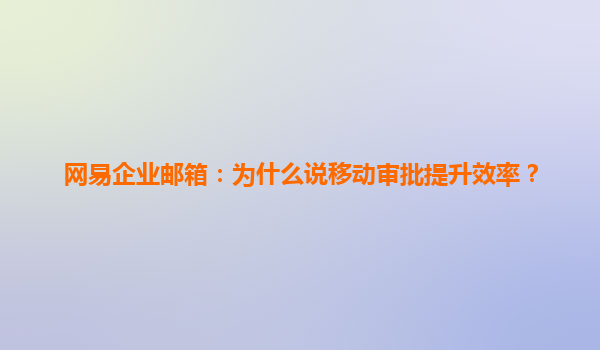 2025-06-14移动审批提升效率——网易企业邮箱助力企业高效办公 引言:数字化时代的办公需求 随着互联网技术的不断发展,企业对于高效办公工具的需求愈发迫切。传统的审批流程往往受限于时间和空间,导致效率...