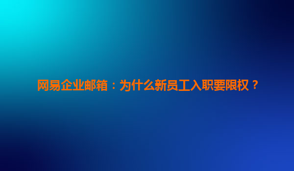 2025-06-14网易企业邮箱:为什么新员工入职要限权? 随着信息化时代的到来,企业对于数据安全和内部管理的重视程度日益提高。作为国内领先的电子邮件服务提供商之一,网易企业邮箱凭借其高可靠性、强大的功能以及...