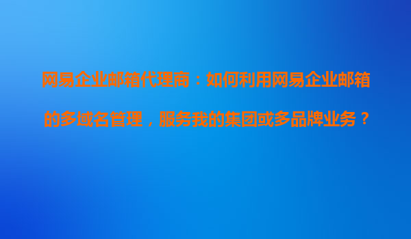 2025-11-03引言:多域名管理助力企业集团化发展 在数字化办公时代,企业邮箱不仅是沟通工具,更是品牌形象与管理效率的体现。网易企业邮箱凭借其强大的多域名管理功能,为集团企业及多品牌业务提供了一站式解...