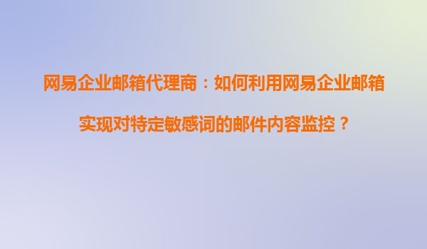 网易企业邮箱代理商:如何利用网易企业邮箱实现对特定敏感词的邮件内容监控? 一、网易企业邮箱的核心优势 作为国内领先的企业邮箱服务商,网易企业邮箱在安全性、稳定性和功能扩展性方面均表现卓越:...