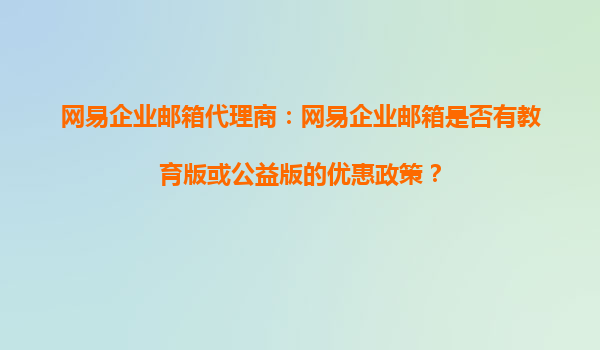 2025-11-03网易企业邮箱代理商解读:教育版与公益版优惠政策 作为国内领先的企业级邮箱服务提供商,网易企业邮箱凭借其稳定的性能、安全的保障和丰富的功能,赢得了众多用户的青睐。对于教育机构和公益组织来说,网易企业邮箱...