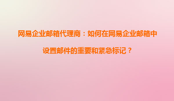 2025-11-03网易企业邮箱代理商指南:如何设置邮件的重要和紧急标记 引言 在高效的商业沟通中,标记邮件的优先级是企业邮箱用户提升效率的重要手段之一。作为网易企业邮箱的官方代理...