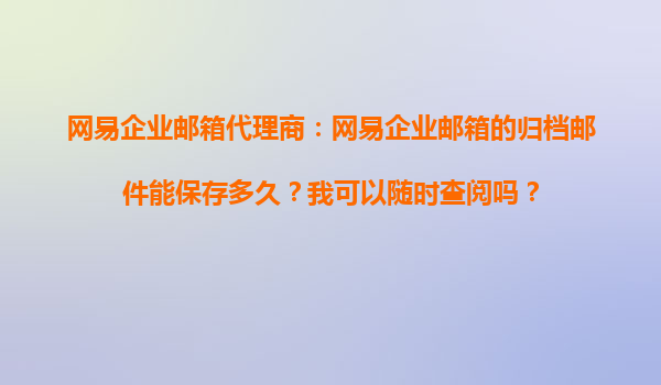2025-11-03网易企业邮箱归档邮件保存时长及查阅指南:代理商视角解析 一、网易企业邮箱归档邮件的核心功能 网易企业邮箱作为国内领先的企业级邮件服务,其归档功能是企业数据管理的重要工具。归档邮件采用独立云...