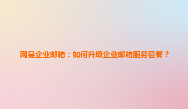 2025-04-28如何升级网易企业邮箱服务套餐? 随着企业的发展,邮箱服务的需求也不断增加。网易企业邮箱以其稳定性、安全性和高效性,成为了许多企业邮箱服务的首选。然而,随着业务的扩展,企业邮箱的使用需求也在不...