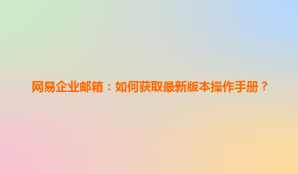网易企业邮箱:如何获取最新版本操作手册? 网易企业邮箱作为国内领先的企业邮箱服务之一,凭借其稳定性、安全性和丰富的功能,已成为许多企业的首选邮箱平台。无论是企业通讯、邮件管理还是安全保障,网易企业邮箱...