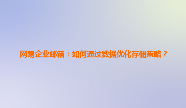 2025-04-27如何通过数据优化存储策略——以网易企业邮箱为例 在当今数字化和信息化迅速发展的时代,企业对邮箱服务的需求越来越高,尤其是需要处理大量数据和邮件的企业。网易企业邮箱作为国内领先的企业邮箱服务商,其在...