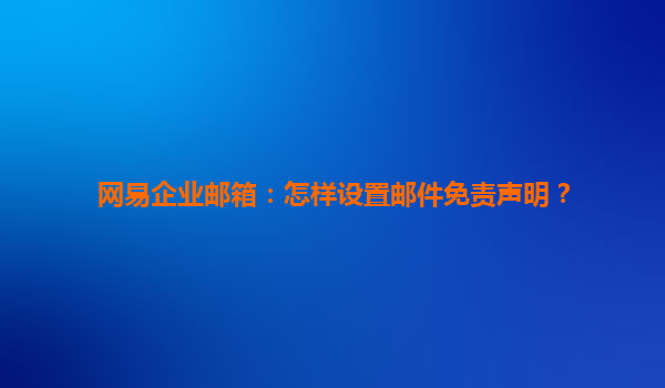 2025-04-27网易企业邮箱:如何设置邮件免责声明? 在现代企业的沟通中,电子邮件已经成为了最为常见且重要的沟通工具之一。尤其是对于需要处理大量客户、合作伙伴以及内部沟通的企业而言,如何确保电子邮件的专业性与合规...
