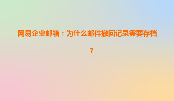 2025-04-27为什么邮件撤回记录需要存档?——以网易企业邮箱为例 在现代办公环境中,电子邮件已经成为了最为常用的沟通工具。尤其是在企业级的办公场景中,邮件不仅仅是日常沟通的工具,还是传递公司重要信息、决策文件以及商...