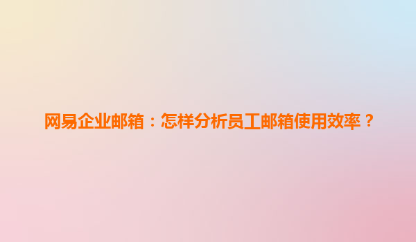 2025-04-27怎样分析员工邮箱使用效率——以网易企业邮箱为例 随着信息化时代的到来,企业对于员工邮箱的使用效率越来越重视。作为企业沟通的重要工具,邮箱的高效使用能够提高工作效率、促进协作,同时帮助管理者掌握员工的工...