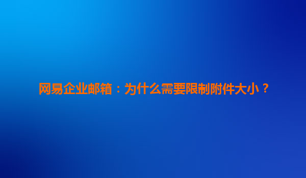 2025-04-27网易企业邮箱:为什么需要限制附件大小? 在现代商务交流中,电子邮件已成为最常见的沟通工具之一。无论是日常的工作沟通还是项目协作,邮件附件作为信息传输的重要载体,发挥着不可替代的作用。然而,随着附件内容...