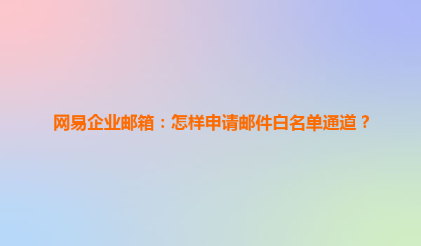 2025-04-26网易企业邮箱:怎样申请邮件白名单通道? 在现代企业的运营中,邮件作为一种重要的沟通工具,承载着大量的商业信息。为了确保重要的商业邮件能够顺利送达并避免被误判为垃圾邮件,很多企业选择申请邮件白名单...