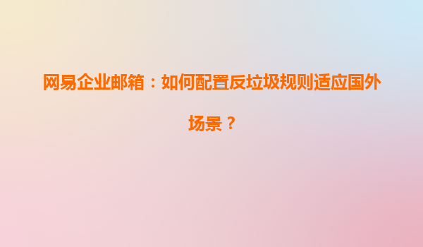 2025-04-26如何配置网易企业邮箱的反垃圾规则以适应国外场景 随着国际化业务的不断拓展,越来越多的企业需要通过电子邮件与海外客户、合作伙伴进行沟通。而为了确保邮件安全性、减少垃圾邮件的干扰,反垃圾规则的配置显得尤为...