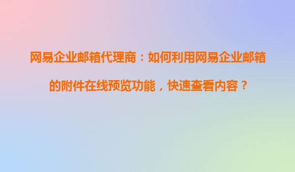 2025-11-02网易企业邮箱代理商:如何利用网易企业邮箱的附件在线预览功能,快速查看内容? 引言:企业邮箱附件预览的价值 在快节奏的商务环境中,高效处理文件是企业运营的重要需求。网易企业邮箱...