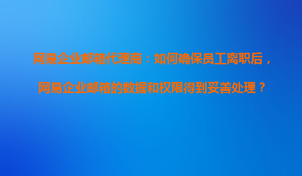 2025-11-02网易企业邮箱代理商:如何确保员工离职后,网易企业邮箱的数据和权限得到妥善处理? 一、员工离职对企业邮箱管理的挑战 员工离职是企业运营中的常态,但若不妥善处理其企业邮箱账户,可...