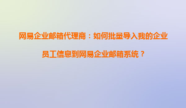 2025-11-02网易企业邮箱代理商指南:如何高效批量导入员工信息 随着企业规模扩大,手动逐一添加员工邮箱账户的方式效率低下,而网易企业邮箱及其代理商提供的批量导入功能可显著提升管理效率。本文将详细介绍操作流程,并...