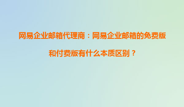 2025-11-02网易企业邮箱代理商:网易企业邮箱的免费版和付费版有什么本质区别? 一、网易企业邮箱的核心优势 网易企业邮箱作为国内领先的企业级邮件服务提供商,凭借以下优势深受企业用户信赖: 技术实力保障:...