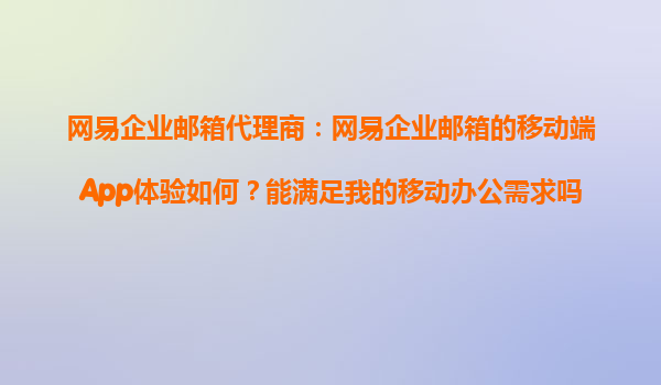 2025-11-02网易企业邮箱代理商:网易企业邮箱的移动端App体验如何?能满足我的移动办公需求吗? 随着移动办公的普及,企业邮箱的移动端体验成为用户选择的重要因素之一。网易企业邮箱作为国内领先的企业邮箱服务商,...