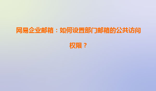 2025-04-23网易企业邮箱:如何设置部门邮箱的公共访问权限? 在现代企业管理中,电子邮件已经成为企业沟通的重要工具。作为国内知名的企业邮箱服务提供商,网易企业邮箱为企业用户提供了高效、安全、易管理的邮件服务。对...