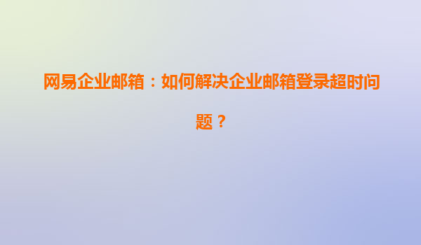 2025-04-23网易企业邮箱:如何解决企业邮箱登录超时问题? 在如今快速发展的商业环境中,企业通信工具的可靠性和便捷性显得尤为重要。作为国内领先的邮箱服务提供商,网易企业邮箱以其稳定性、强大的功能和安全保障获...