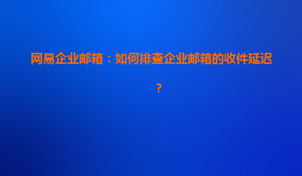 2025-04-23网易企业邮箱:如何排查企业邮箱的收件延迟? 随着企业对信息化的需求不断增加,企业邮箱已经成为日常工作中必不可少的工具之一。而在使用企业邮箱的过程中,有时会遇到邮件收件延迟的问题,这对企业的日常运营...