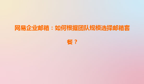 2025-04-23如何根据团队规模选择网易企业邮箱套餐 随着企业的不断发展和团队规模的扩大,企业邮箱成为了组织内部沟通的重要工具。而在众多企业邮箱服务提供商中,网易企业邮箱以其稳定性、安全性和强大的功能性脱颖而出。...