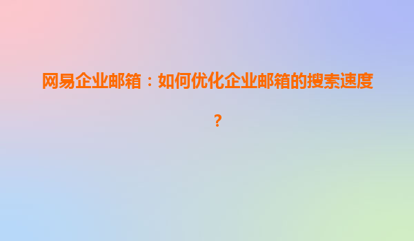 2025-04-23网易企业邮箱:如何优化企业邮箱的搜索速度? 在现代企业的日常工作中,电子邮件已经成为不可或缺的沟通工具。尤其是对于企业邮箱的使用,如何提高邮箱的使用效率和体验是每个企业都在关注的问题。网易企业邮箱凭借...
