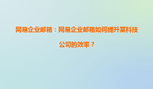 2025-04-20网易企业邮箱如何提升某科技公司的效率? 一、引言 随着科技行业的飞速发展,企业在提升效率、加强团队协作、优化信息流通等方面面临着越来越大的挑战。尤其是对于科技公司而言,信息的及时传递和管理...